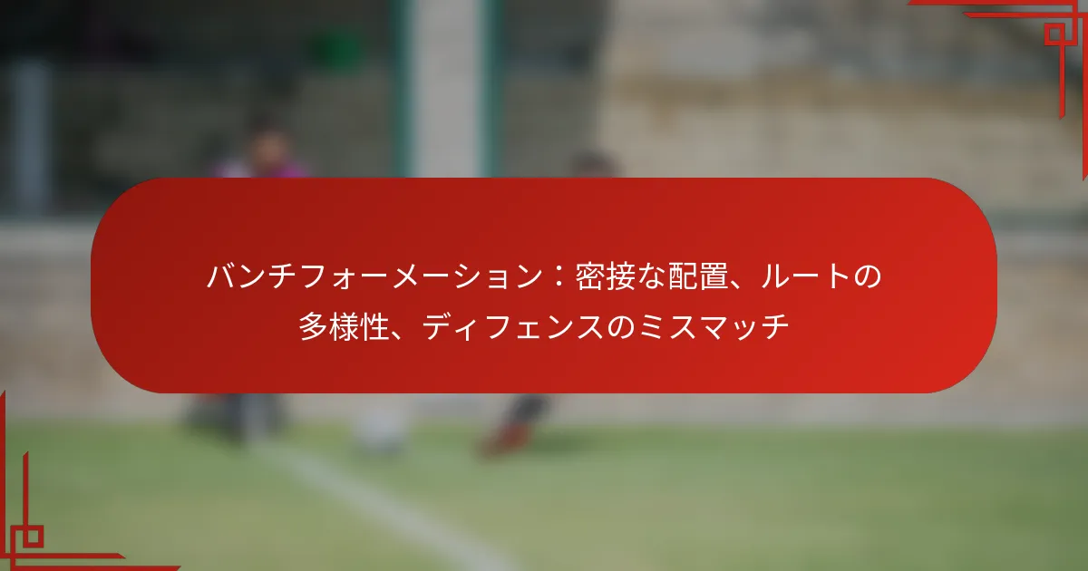 バンチフォーメーションは、選手が密集して配置されることが特徴であり、しばしばディフェンダーの混乱を引き起こします。主な目的は、個々の選手が動きやすいスペースを作り出し、戦略的なプレーや迅速なトランジションを可能にすることです。ディフェンダーを集中したエリアに引き寄せることで、攻撃チームはギャップを利用し、得点機会を生み出すことができます。