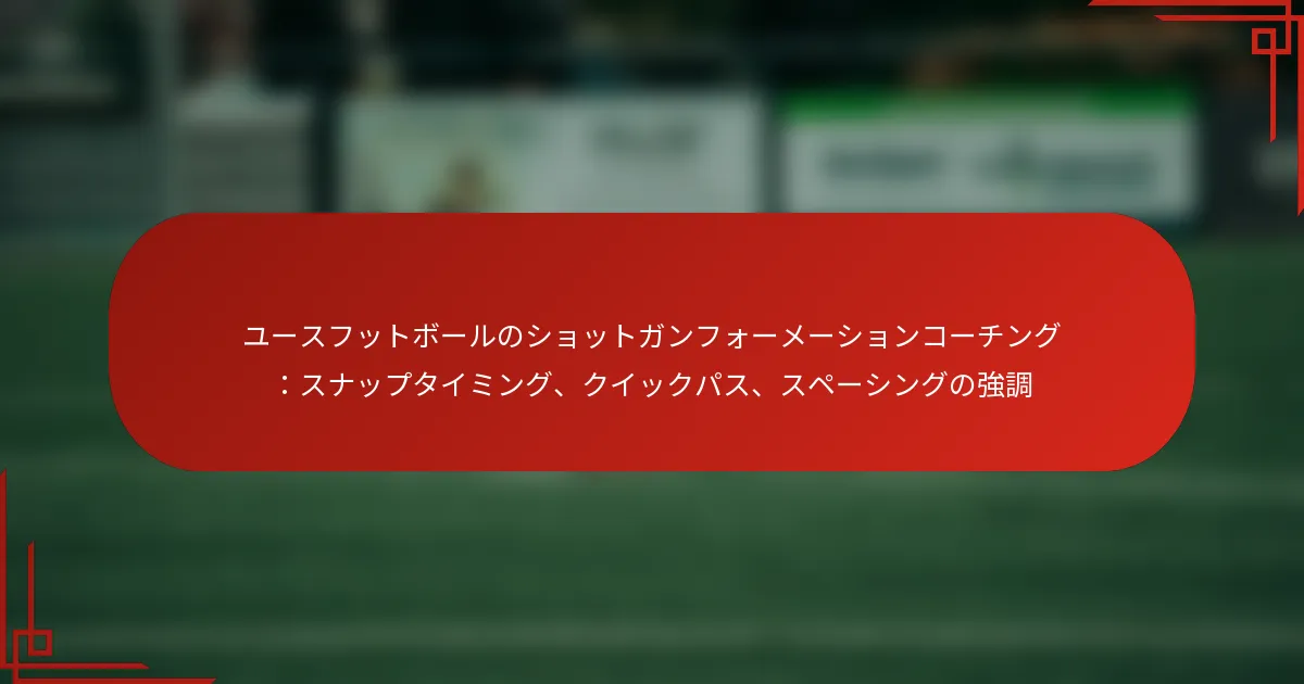 ショットガンフォーメーションでユース選手を指導するには、スナップタイミング、クイックパス、スペーシングに焦点を当てた年齢に応じた方法が必要です。効果的なコーチングは、基本的なスキル、魅力的な練習方法、ポジティブな強化を強調し、選手の成長を促進します。